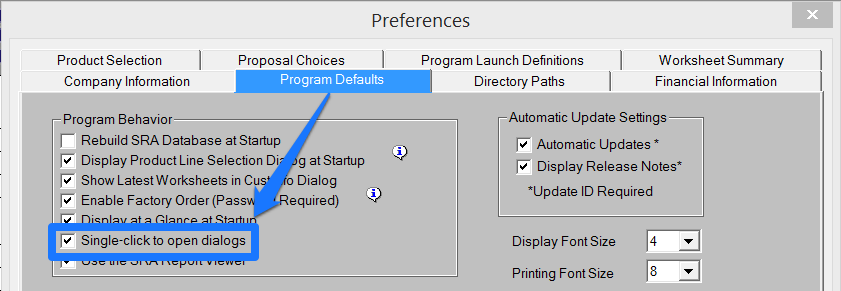 6. Display Release Notes – When this box is marked, the details of recent updates to SRA will be displayed at the start up of the program. These release notes will only display when there is a program change or a product line update in SRA.