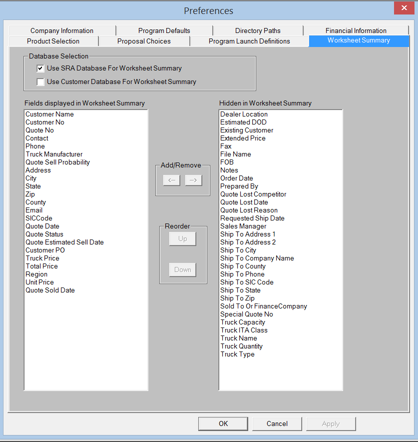 1. Worksheet Summary – In this tab, you can manipulate and customize the look of the worksheet summary by adding, hiding, and organizing the fields.
